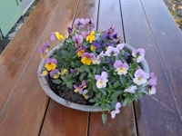 Het weekje Monteisola vloog voorbij. Zaterdagochtend stond ik om negen uur al gepakt om naar de boot te lopen. Bij de ingang van de tuin was een man tegels tegen de muur aan het metselen.